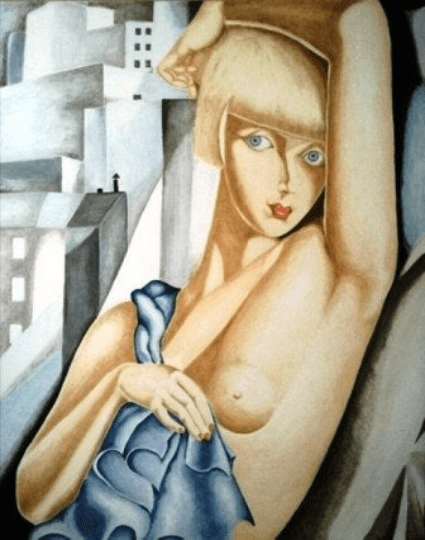 Przedstawiamy wyjątkowe dzieło sztuki – obraz na płótnie “Portret Kobiety”. Ten niezwykły obraz, malowany techniką mieszaną, łączącą olej i akryl, jest hołdem dla stylu i talentu Tamary Łempickiej, wybitnej polskiej malarki, a także nawiązuje do jej słynnego obrazu “Portret Suzy Solidor”. Ten portret ukazuje kobietę o blond włosach z odkrytą piersią, emanującą zarówno siłą, jak i delikatnością.