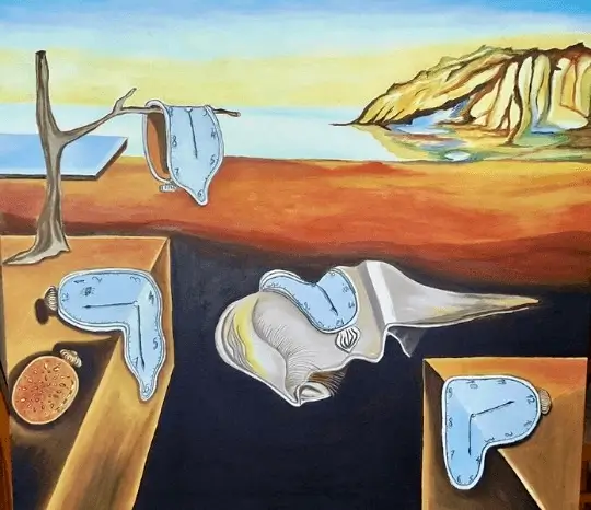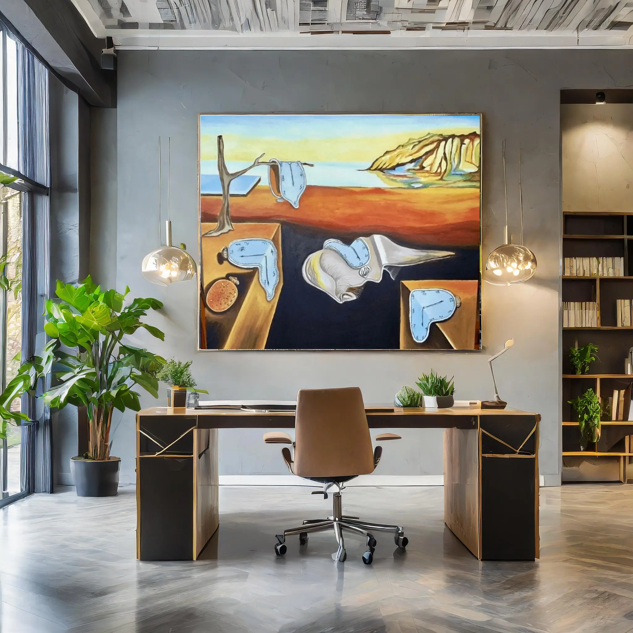 Głównym motywem obrazu są zegary, które rozpływają się w surrealistycznej przestrzeni, wyrażając ulotność i relatywność czasu. Ich zdeformowane formy i nierealistyczne konteksty tworzą niezwykłą atmosferę, która zachwyca i zaskakuje widza.