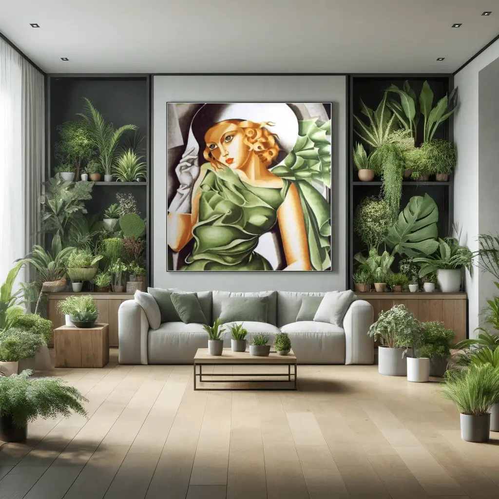 “Zielona Sukienka” to nie tylko obraz, to manifestacja elegancji i stylu kobiecej urody. Dzięki technice mieszanej, inspiracji dziełami Tamary Łempickiej i wyjątkowej kompozycji, ten portret na płótnie staje się nieodłącznym elementem Twojej przestrzeni życiowej, którym będziesz zachwycać się każdego dnia. Pozwól sobie na chwilę refleksji i zanurz się w pięknie “Zielonej Sukienki” już dziś!